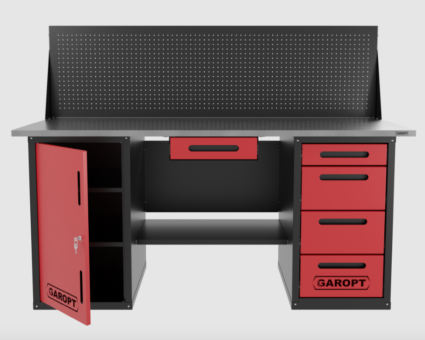 Верстак двухтумбовый дверь/4 ящиков с экраном и ящиком, красный 1800*700 Garopt, GT1800DY1Y4PP.red купить в Краснодаре цена ✅ - Все для СТО