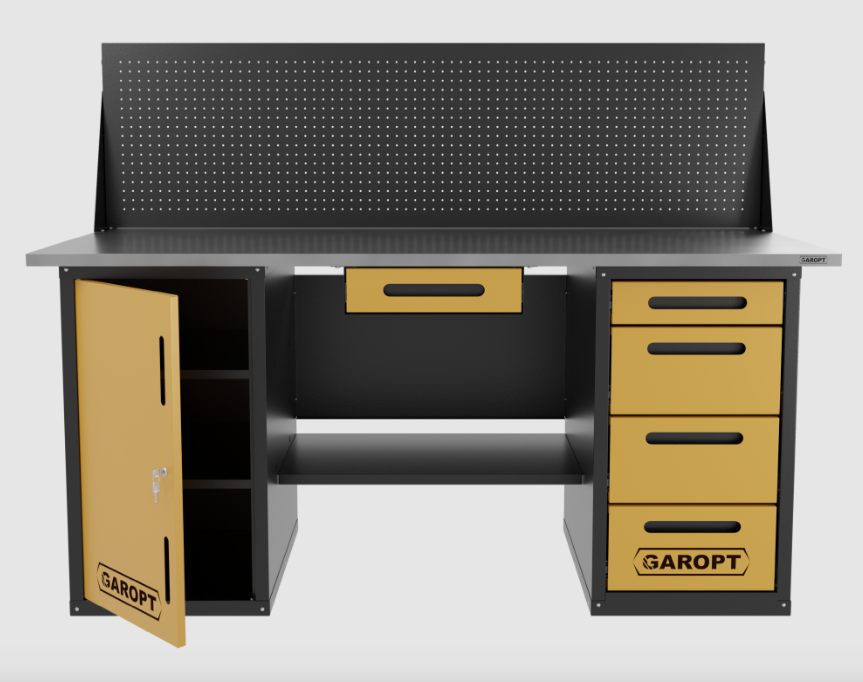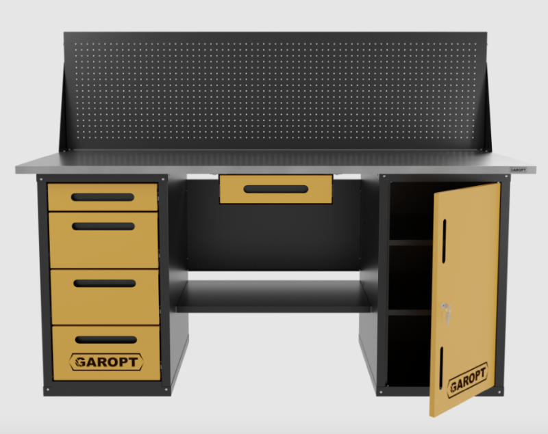 Верстак двухтумбовый дверь/4 ящиков с экраном и ящиком, желтый 1800*700 Garopt, GT1800DY1Y4PP.yell