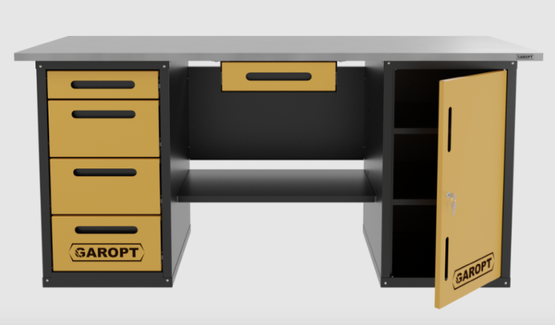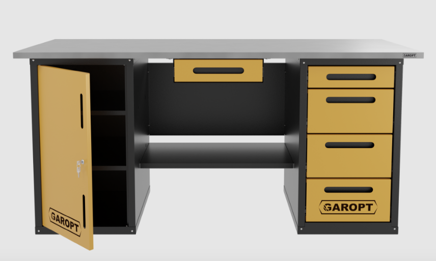 Верстак с ящиком двухтумбовый дверь/4 ящиков, желтый 1800*700 Garopt, GT1800DY1Y4.yell