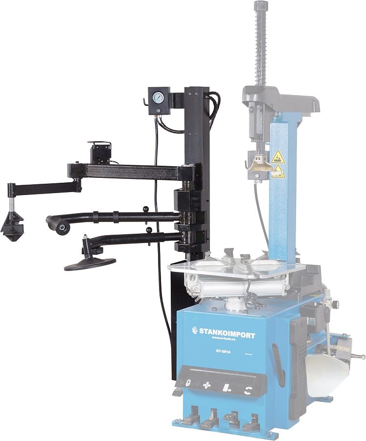 Третья рука (вспомогательное устройство) для работы с жесткими низкопрофильными шинами для станков - многофункциональное приспособление, которое предназначено для монтажа/демонтажа низко профильных, широких и жестких шин. Данная установка значительно ускоряет процесс бортировки.