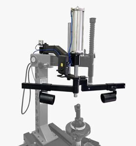 Вспомогательное устройство для облегчения процесса монтажа и демонтажа низкопрофильных шин и шин с жестким бортом. Устройство оснащено тремя специальными манипуляторами.