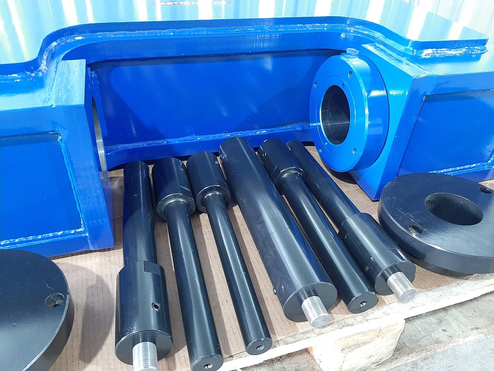 С-образный выпрессовщик пальцев траковых цепей без башмаков ВПТ110С (110 тонн) представляет собой специализированное оборудование для замены изношенных пальцев, втулок, уплотнений гусеничных техники. Данная модификация используется для замены пальцев, втулок в цепях без башмаков! Выпрессовка и запрессовка пальцев траковых цепей (гусениц), замена гусениц. Выпрессовка втулок стрел, рукоятей, мостов, аутригеров Другие работы по монтажу и демонтажу запрессованных элементов техники. Модель ВПТ110С предназначена для выпрессовки/запрессовки пальцев с диаметром до 80мм и длиной до 350мм. Преимущества: Возможность применения на различных видах техники, Снижение трудоемкости процесса, Выпрессовка без механического повреждения деталей, Существенное увеличение ресурса ходовой части. Примечание: Для изготовления выпрессовщика по Вашим размерам необходимо написать нам на почту info@vsedlyasto.ru Коплектация: пуансоны д.45*200мм, д.45 *100мм, д.45*30мм, д.30мм*200мм, д.30*100мм направляющие под пуансоны д.45 и д.30мм В комплект С-образного выпрессовщика пальцев траковых цепей ВПТ110С насос не входит. Опционально можно заказать ручной, пневматический, электрический насосы. Опции: ручной пневматический электрический насосы Усилие - 110т Ход штока - 300мм Масса - 220кг Давление в гидросистеме - 700бар Габариты рабочей зоны (ширина/расстояние от оси штока до низа скобы) - 350/80мм