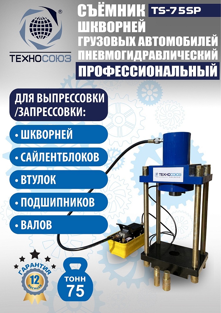 Пневмогидравлический выпрессовщик шкворней TS-75SP | 75т Ø60 мм
