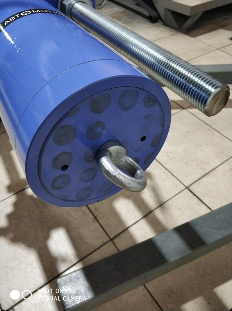 Выпрессовщик пальцев траковых цепей 95т. ВПТ95 представляет собой специализированное оборудование для замены изношенных пальцев, втулок, уплотнений гусеничных техники. Выпрессовка и запрессовка пальцев траковых цепей (гусениц), замена гусениц. Выпрессовка втулок стрел, рукоятей, мостов, аутригеров Другие работы по монтажу и демонтажу запрессованных элементов техники. Преимущества: Возможность применения на различных видах техники, Снижение трудоемкости процесса, Выпрессовка без механического повреждения деталей, Существенное увеличение ресурса ходовой части. Комплектация: пуансоны Ø45*350мм, Ø45 *100мм, Ø45*30мм, Ø30мм*350мм, Ø30*100мм направляющие под пуансоны дØ45 и д.30мм насос ручной. Дополнительное оборудование: Пневмогидравлический насос + РВД, Электрогидравлическая станция + РВД, Ручной гидравлический насос + РВД, Мобильная тележка-кран (для перемещения и эксплуатации ВПТ в полевых условиях) Примечание: Возможно изготовление выпрессовщика по требуемым характеристикам с любым усилием. Усилие - 95т (цилиндр двухстороннего действия, усилие обратного хода 20т) Ход штока - 300мм Расстояние между шпильками - 300мм Масса - 150кг Диаметр штока - 56мм Давление в гидросистеме - 700бар В КОМПЛЕКТЕ: пуансоны Ø45*350мм, Ø45 *100мм, Ø45*30мм, Ø30мм*350мм, Ø30*100мм направляющие под пуансоны Ø45 и д.30мм насос ручной.