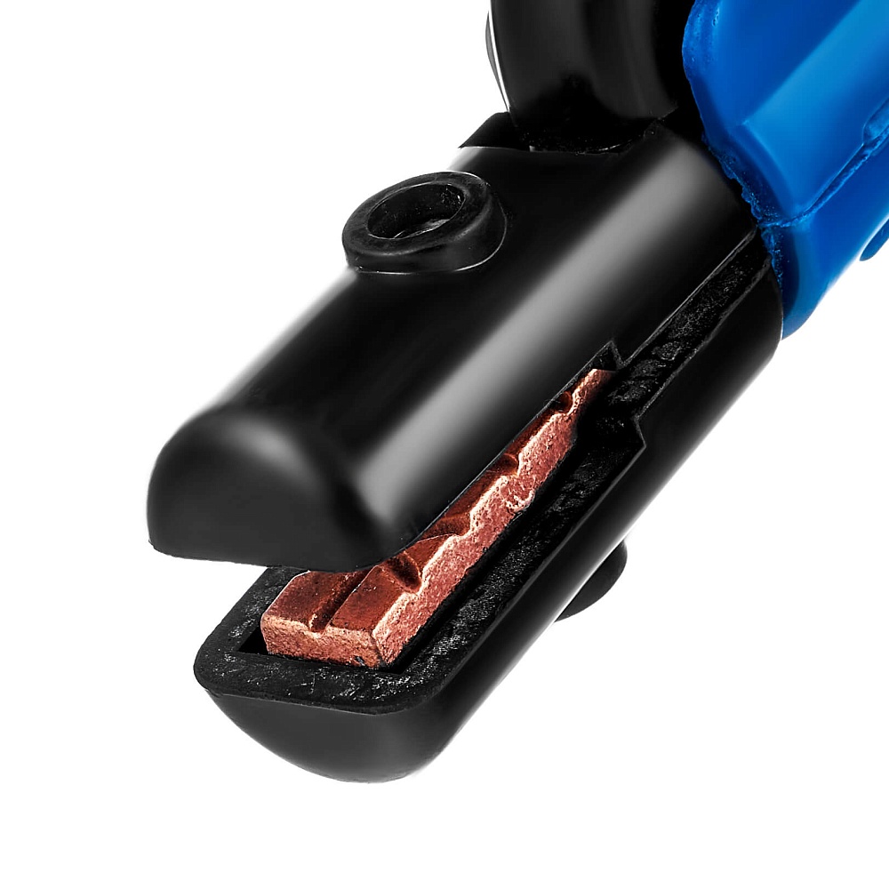 • На зажимных стальных губках электрододержателя имеется 4 проточки для фиксации электрода. Возможна фиксация электрода в 4 пространственных положениях под углом  45°, 90°, 135°, 180°.